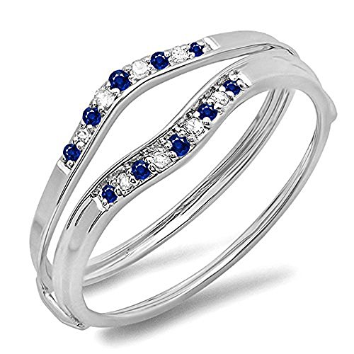 Dazzlingrock Collection 10K Gold Round Blue Sapphire & White Diamond Ladies Anniversary Enhancer Guard Wedding Band