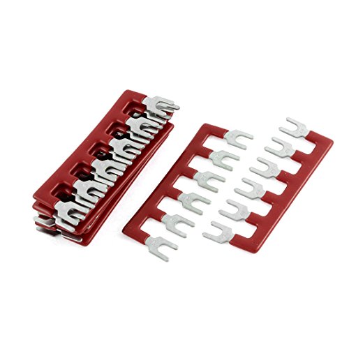 uxcell Fork 6 Postions Pre Insulated Terminal Strip Block Red 600V 25A 10 Pcs