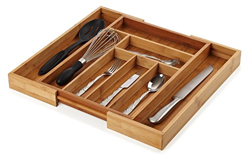 Organic Bamboo Extendable Drawer, Heim Concept Expandable and Extendable 6-8 Slots Organizer Cutlery Tray Layout for Utensils Utility Accessories Storage