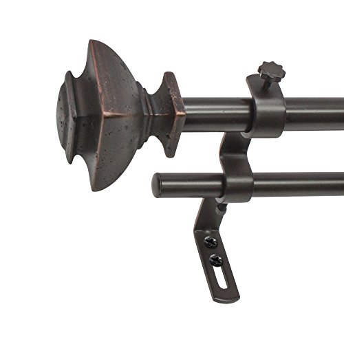 Montevilla Beme International 5/8" Core Square Double Telescoping Drapery Rod Set, 48-86", Oiled Bronze