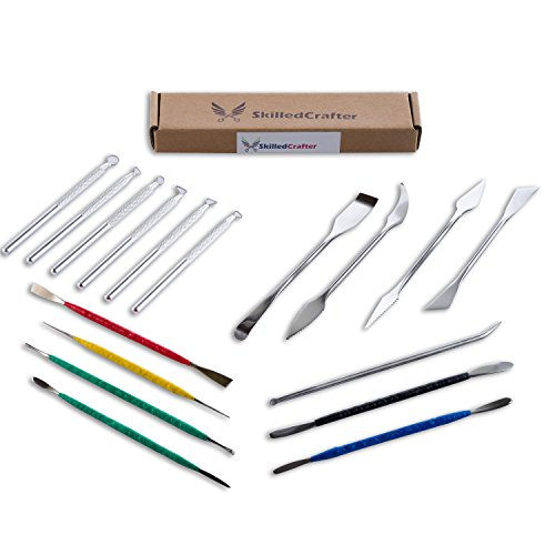 Skilled Crafter Pottery Tools. Professional Quality Clay Modeling & Ceramics Sculpting Set. 28 Stainless Steel & Aluminum Tools in 17 Piece Set + FREE Needle Tool. Best for Clay, Sculpey, Polymer, Wax