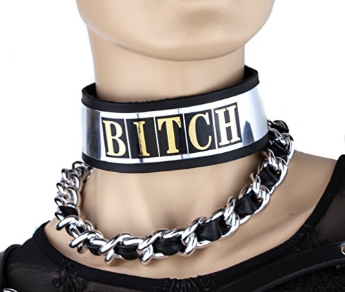 Metal Plate Whore Collar Genuine Leather Choker with Buckle Silver