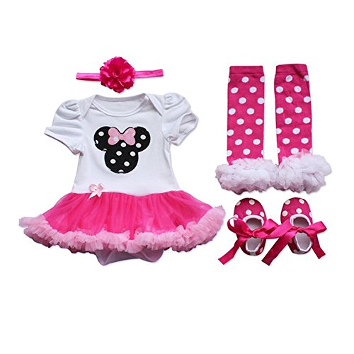 Vigoo® Baby Girls 4PCs Outfits Clothing Headband Tutu Romper Dress/ First Birthday Dress (3~6Months)