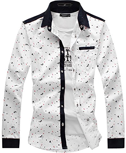 QZUnique Men's Big and Tall Fashion Basic Button-Down Long Sleeve Shirt White US XS/Asian M