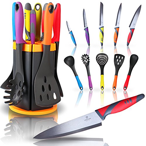 Kitchen Knife and Utensil Set with Rotating Stand 11 Pc Kitchen Set with 5 Knives and 5 Utensils in an Attractive Rotating Holder By Jaguar Kitchen Products