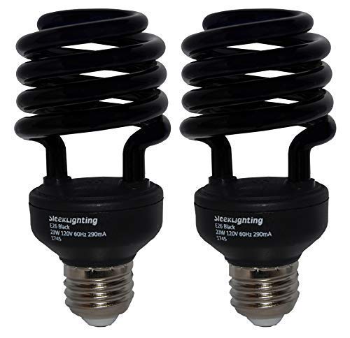 SleekLighting 23 Watt T2 Black Light Spiral CFL Light Bulb, UL Approved- Blacklight Bulbs for Parties 120V, E26 Medium Base-Energy Saver (Pack of 2)