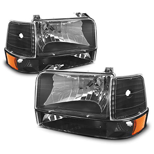 For 92-96 Ford Bronco F150 F250 F350 OE Replacement Black Headlights Corner Signal Left/Right Lamps Set