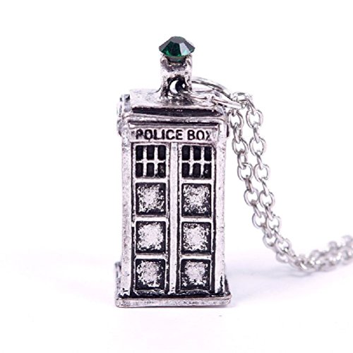 Banggood Doctor Who 3D Tardis Police Box Pewter Tall Long Chain Simple Unisex Necklace (Silver)