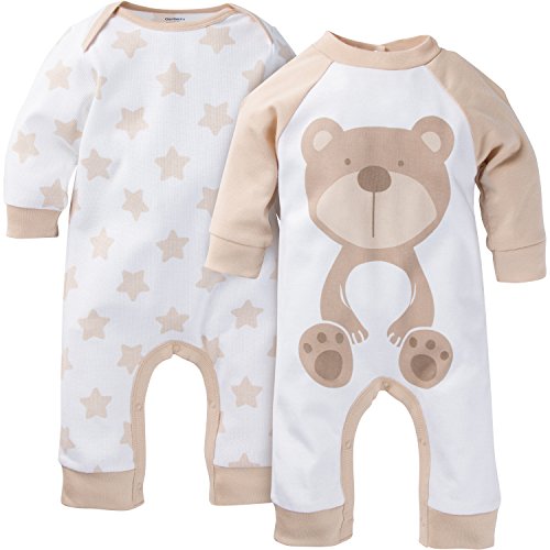 Gerber Unisex-Baby Newborn 2 Pack Coverall, Brown Bear, 0-3 Months