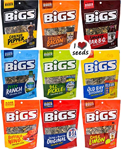 Bigs Sunflower Seed Flavor Variety Pack 9 bags (5.35oz each) with Bonus Magnet