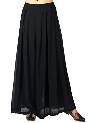 Choies Women's Chiffon Pleated Plain Elastic Waist Wide Leg Palazzo Pants
