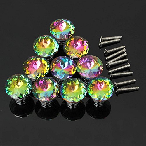 king do way 10pcs Colorful Crystal Glass Cupboard Wardrobe Cabinet Drawer Knob Door Pull Handle