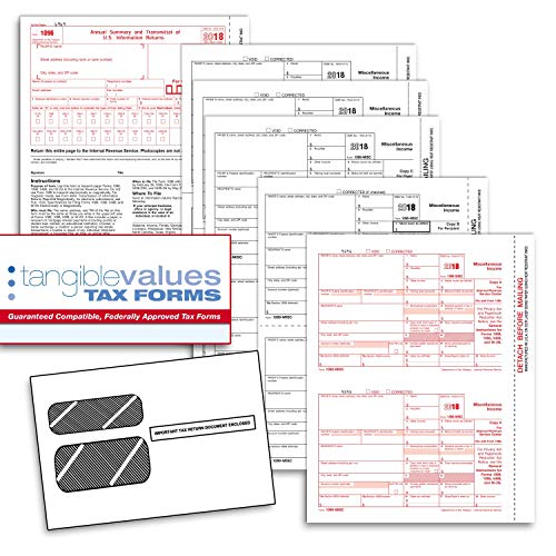 Tangible Values 1099 Misc Laser Forms (5-part) with Envelopes Small Business Kit (20 vendors/suppliers)