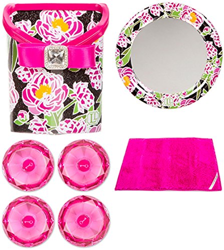 Locker Lookz Pink Peony Bin and Mirror plus Pink Gem Magnets and Fur Rug Bundle