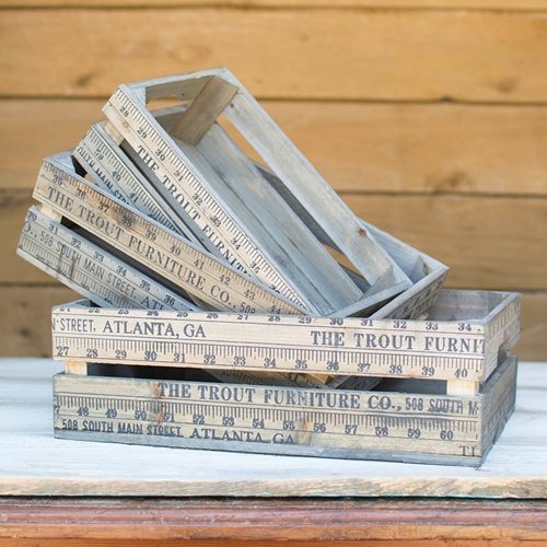 Rectangular Vintage Wooden Yardstick Crates, Rustic Brown, Set of 3
