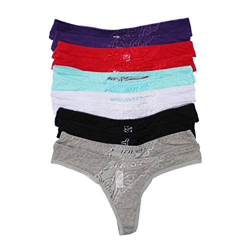 Mamia 12 Pack Cotton Thong Diagonal Lace Accented Panties (XL)