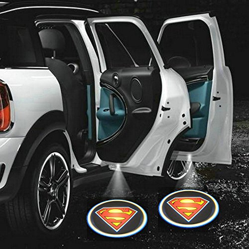 ZOZ 2pcs Wireless No Drill Type LED Laser Car Door Light Welcome Projector Light Logo Ghost Shadow Emblems Magnet Sensor Easy Installing (Superman)