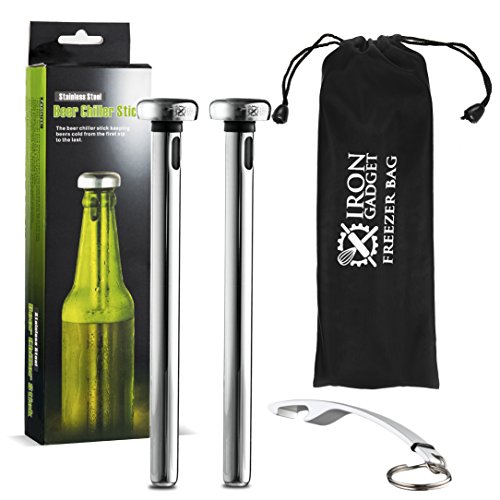 Beer Chiller Sticks (Set of 2) Keeps your Bottle Beverages Cool for Longer Periods: FREE Bottle Opener and Carrying Case / Freezer Bag