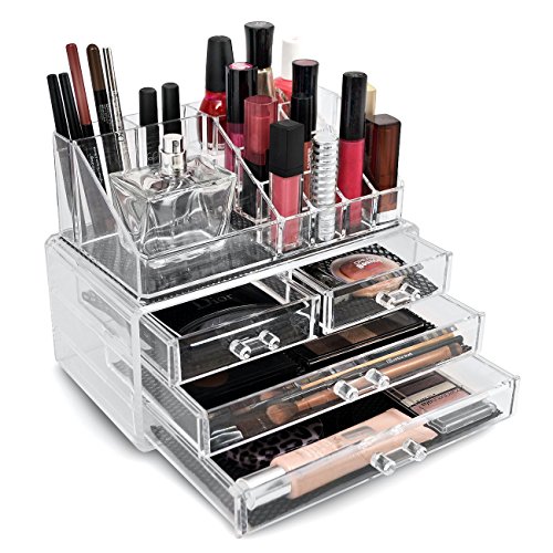 Sorbus Acrylic Cosmetic Makeup and Jewelry Storage Case Display - Great for Lipsticks, Liners, Nail Polishes, Brushes, and Much More-Bathroom Space Saving, Stylish Acrylic Case - Christmas Gift