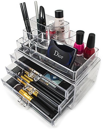 Sorbus Acrylic Cosmetics Makeup and Jewelry Storage Case Display- Includes Round Top Storage with 3 Large Drawers