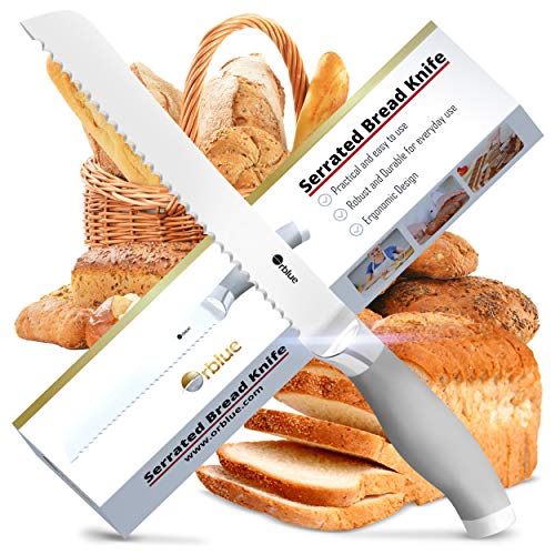 Orblue Serrated Bread Knife, Ultra-Sharp Stainless Steel Bread Cutter (8-Inch Blade with 5-Inch Handle)