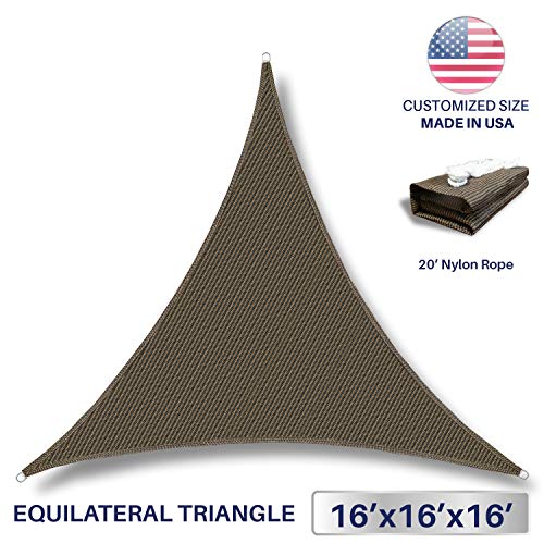 Windscreen4less IFD161616 Sun Shade Sail Canopy with Commercial Grade (3 Year Warranty) Customized Sizes Available 16' x 16' x 16', Brown