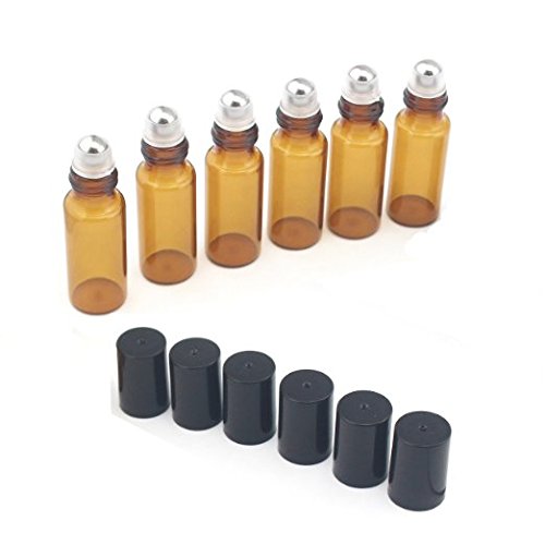 5ml Amber Glass Roller Bottles-Set of 15 with With Metal Ball for Essential Oil,Aromatherapy,Perfumes and Lip Balms