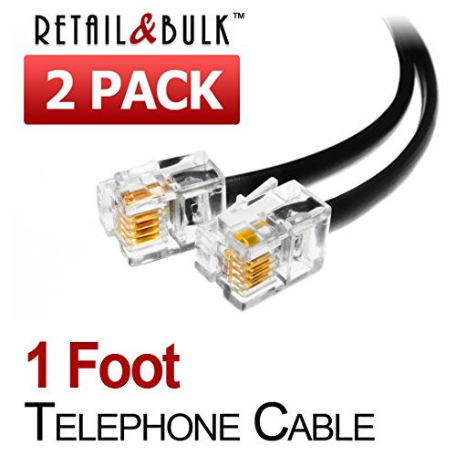 (2 Pack) 12 Inch Short Telephone Cable Rj11 Male to Male 1ft., Phone Line Cord