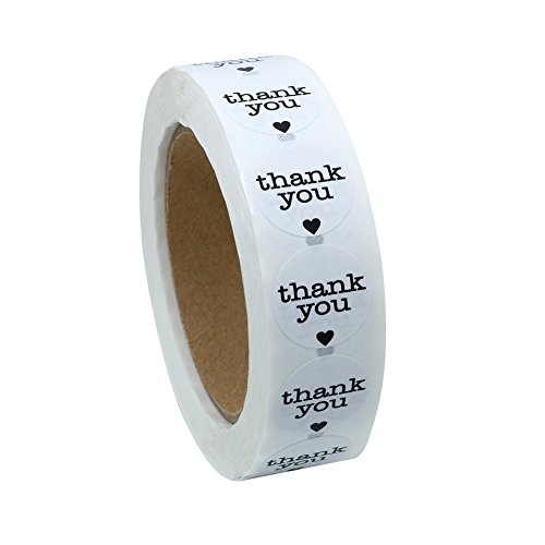 Hybsk Thank You Stickers with Black Heart 1 Inch Round 1,000 Adhesive Labels Per Roll (1 roll)