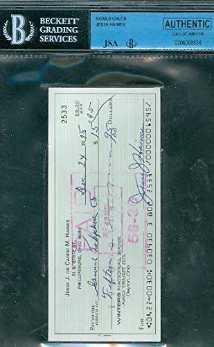 JESSE HAINES AUTOGRAPH 1975 CHECK SIGNED JSA BGS