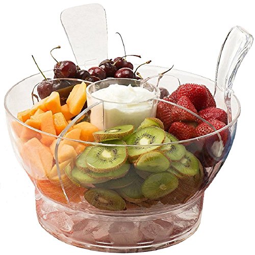 Perlli Salad Bowl Set On Ice - Chilled Serving Bowls - Multifunctional - Includes Dome Lid + Serving Utensils - 4-Way Divider + Dip Cup + Spacious Dome Lid -Acrylic - 6.5-Quart Capacity