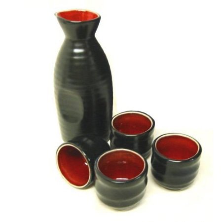 Happy Sales 5 piece Ceramic Sake set - Red & Black