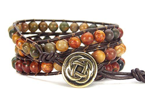 Carolyn Jane's Jewelry Celtic Knot Bracelet Leather Picasso Jasper Beaded Wrap