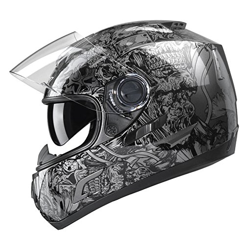 GLX Full Face Street Bike Motorcycle Helmet Dual Visor Sun Shield DOT Approved Silver