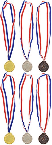 Award Medals - Olympic Style Winner Medals Gold Silver Bronze with Ribbon- 6 Piece Set