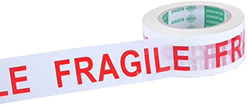 Juvale Fragile Adhesive Warning Tape - Heavy Duty White Red Handle with Care Packing Packaging Shipping and Handling Tape Rolls - 100 Meters
