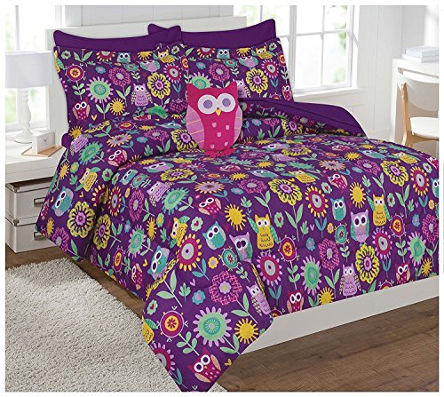 Fancy Collection 8pc Kids/teens Owl Flowers Design Luxury Bed-in-a-bag Comforter Set- Furry Buddy Included - Full Size