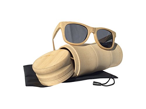 Hand Crafted Genuine Bamboo Wood Sunglasses that Float! with Free Bamboo Case - Classic Wayfarer Style - Polarized Lenses - Made From Eco Friendly Sustainable Wood - 5 Year Warranty