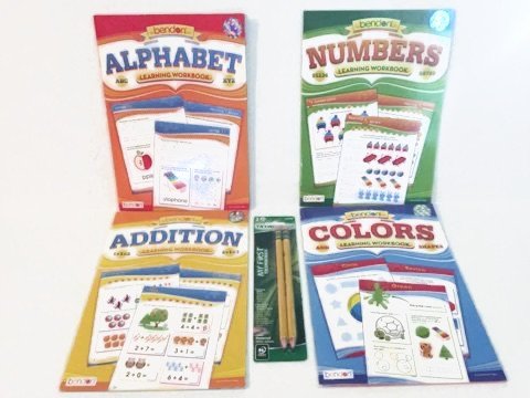 Ready for School Kindergarten Preschool Readiness Preparation Bundle Five Items: One Alphabet Workbook, One Numbers Workbook, One Addition Workbook, One Colors Workbook, One 2pk Ticonderoga Beginner Pencils