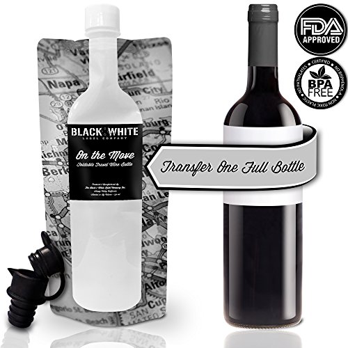 On The Move Travel Foldable Wine Bottle To Go Flask Premium Kit W/Perfect Pour Spout Cap Heavy Duty Plastic Collapsible Flask For Wine - Holds Full 750 ml Bottle - Single Pack