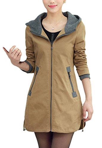 Z-SHOW Women's Plus Size Loose Windbreaker Jacket Trench Coats(Khaki,US M/Asian 2XL)