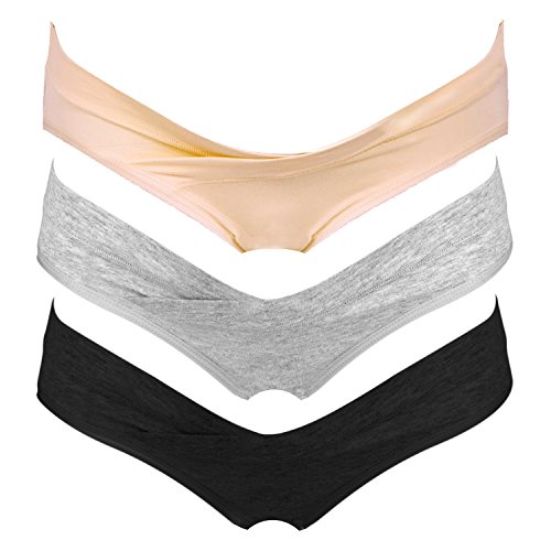 Intimate Portal Women Under The Bump Maternity Panties Pregnancy Underwear 2-Pk Lace Black Beige Large