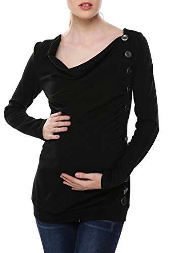 Arshiner Maternity Breasted Long Sleeve Cowl Neck Solid Long Blouse