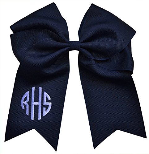Funny Girl Designs Custom Circle Monogram Embroidered Elastic Ponytail Cheer Bow 7.5 Inches Long