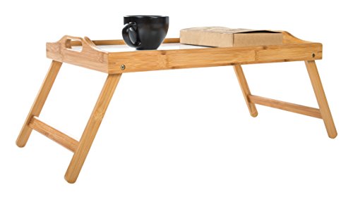 Trademark Innovations Bamboo Folding Bed/Laptop Tray with Handles, White