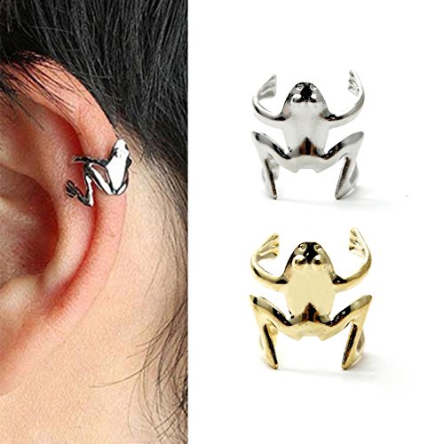 HuntGold 1X Unisex Frog Design Alloy Ear Cuff Clip Wrap Earings Fashion Jewellery(Silver)