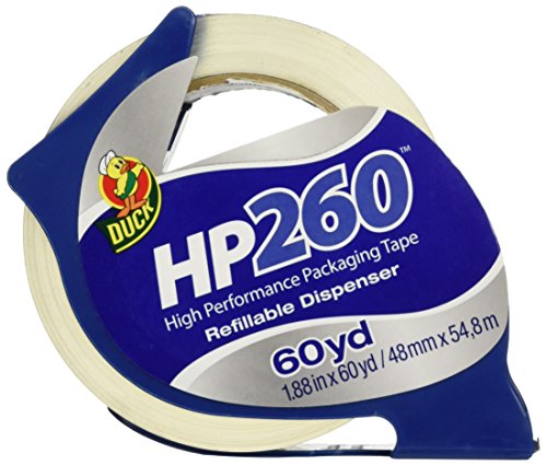 Duck Brand HP260 High Performance 3.1 Mil Packaging Tape with Dispenser, 1.88" x 60-Yard Roll, Crystal Clear, Single Roll (393186)