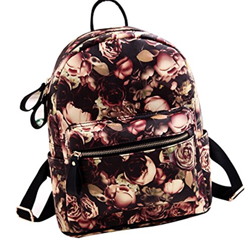 Fansela(TM) Womens Rose PU Leather Backpack Retro School Bag