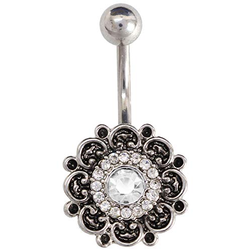 Oasis Plus Flower Shape Crystal Navel Belly Button Bar Barbell Rings Body Piercing Jewelry Rhinestones