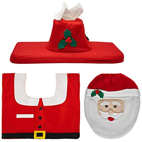 Christmas Happy Santa Toilet Decor Seat Tank Tissue Cover and Rug Set for Christmas Decor
